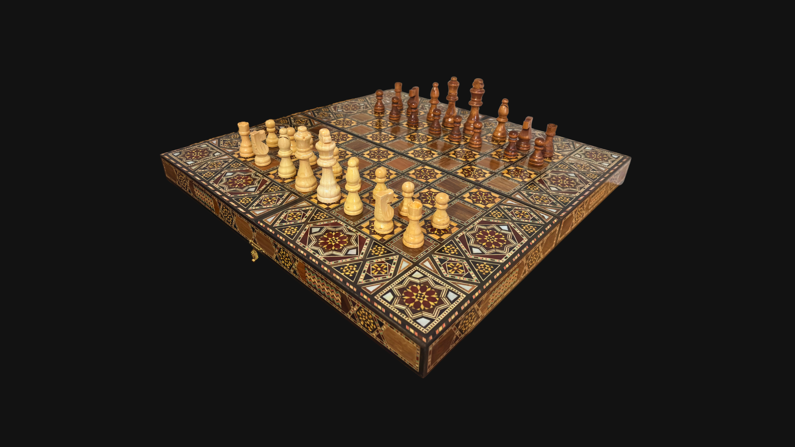 Handcrafted Damascene Backgammon & Chess Table Set by Gaby Al Dayeh – Mother of Pearl Inlay