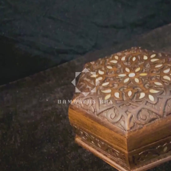 hand carved box, mother of pearl box, luxury wooden box, Damascus craftsmanship, oriental carved box, handmade gift, Damascus Box