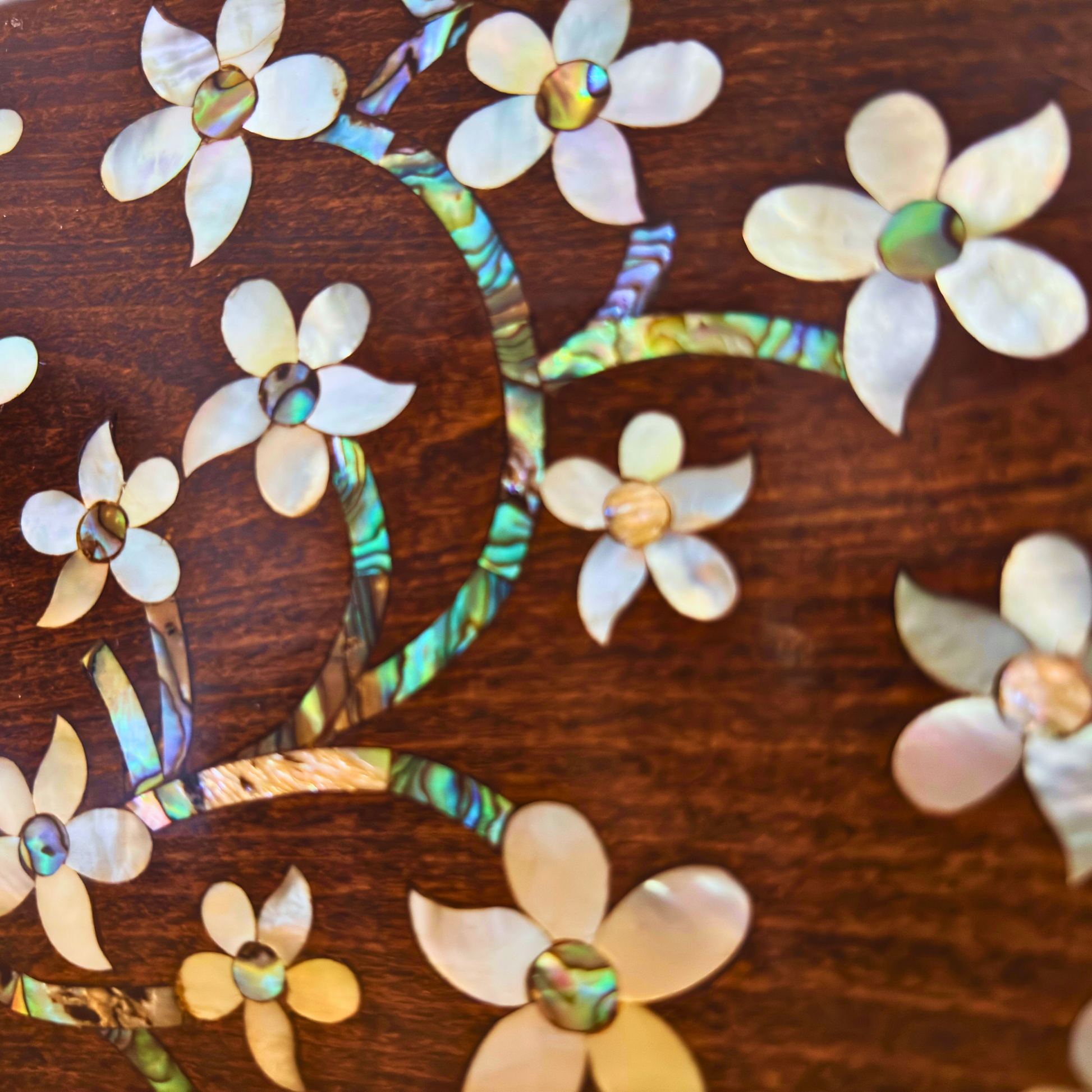 Realizzata a mano in noce pregiato e impreziosita da motivi in madreperla, celebra l’arte orientale più raffinata.