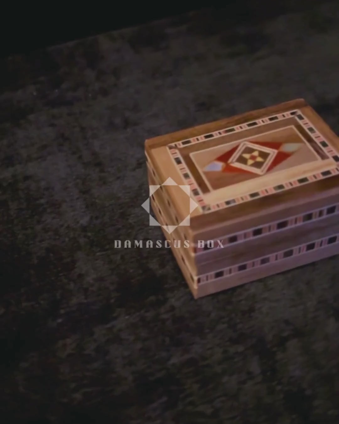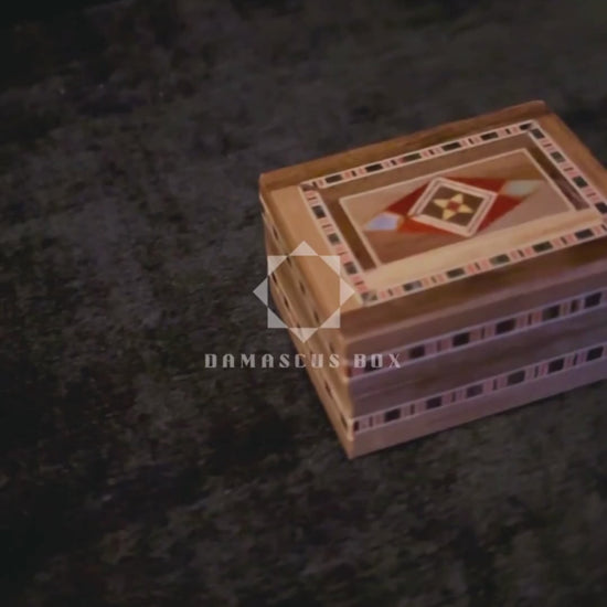 To pudełeczko na pierścionek reprezentuje tradycyjne rzemiosło Damaszku, wykonane ręcznie z naturalnych gatunków drewna.