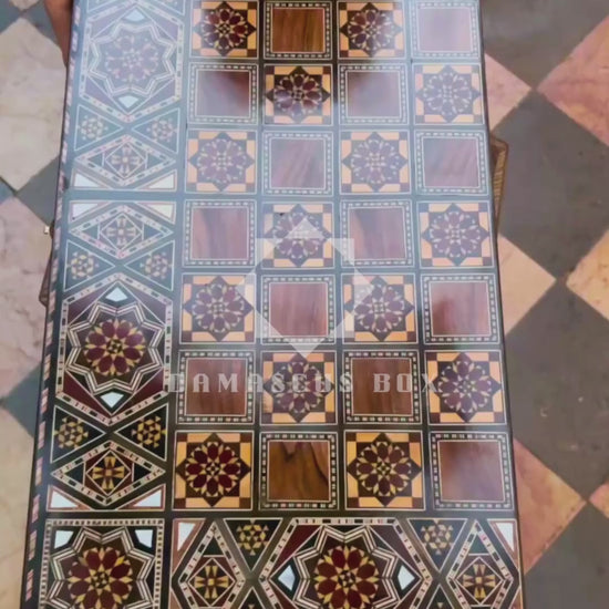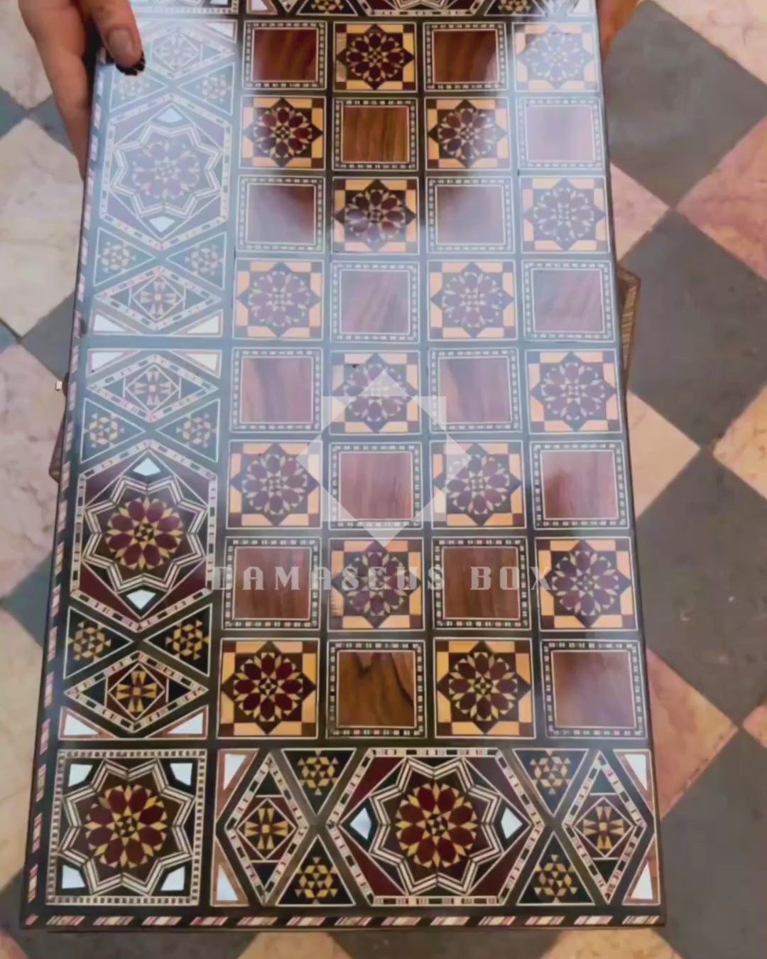 مجموعة أحجار الطاولة، نرد لعبة الطاولة، أحجار أبيض وأسود، Damascus Box، لعبة الطاولة التقليدية، تصميم شرقي، هدية له، هدية لها