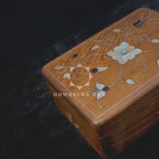 صندوق مشغل عربي، صندوق محفور دمشقي، صندوق مطعّم بالصدف، فنون دمشق، صندوق شرقي فاخر، هدية يدوية فاخرة، Damascus Box