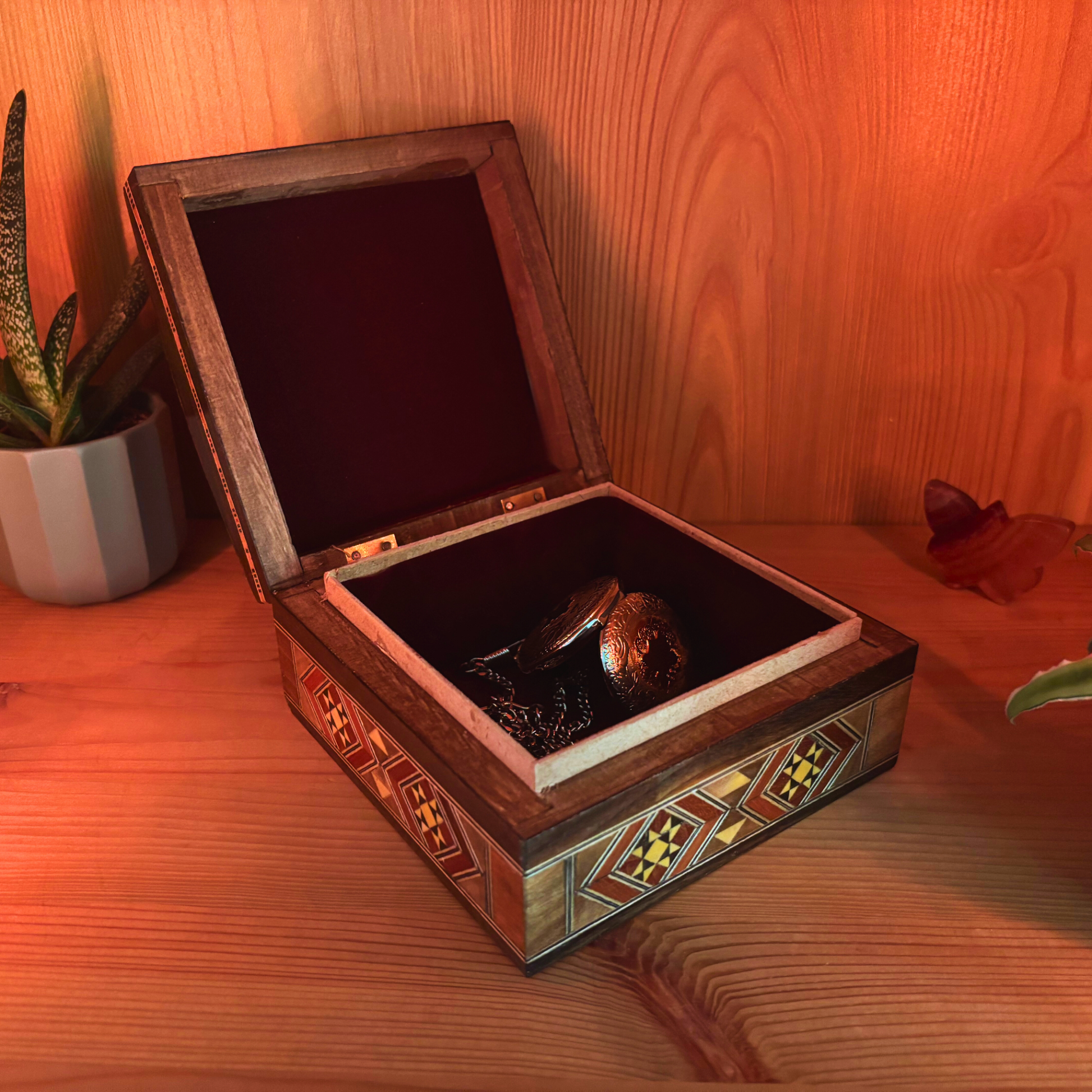 صندوق مجوهرات موزاييك دمشقي – مطعّم يدويًا