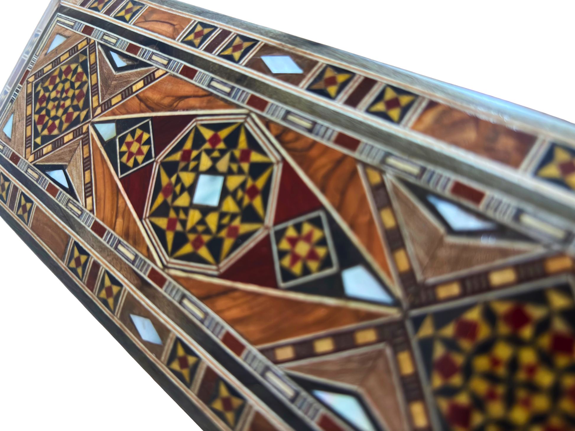 صندوق موزاييك دمشقي للأقلام والمجوهرات والمسبحة – فن مطعّم بالصدف