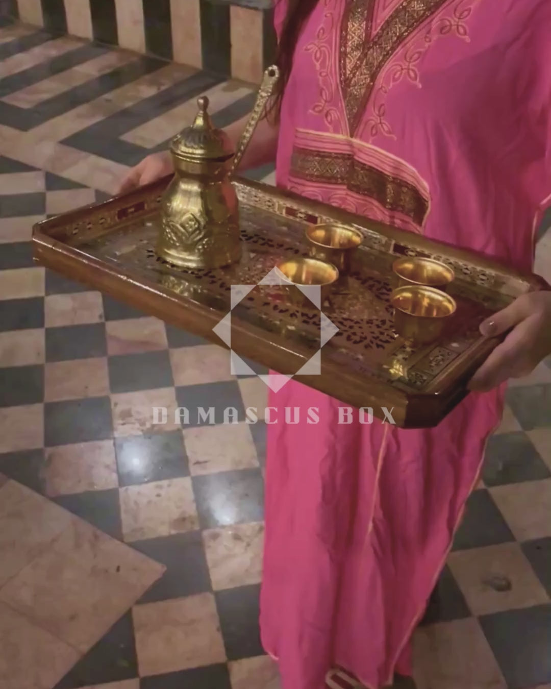 صينية دمشقية، صدف طبيعي، تصميم محفور، موزاييك، ديكور شرقي، فن سوري، صناعة دمشقية يدوية، Damascus Box