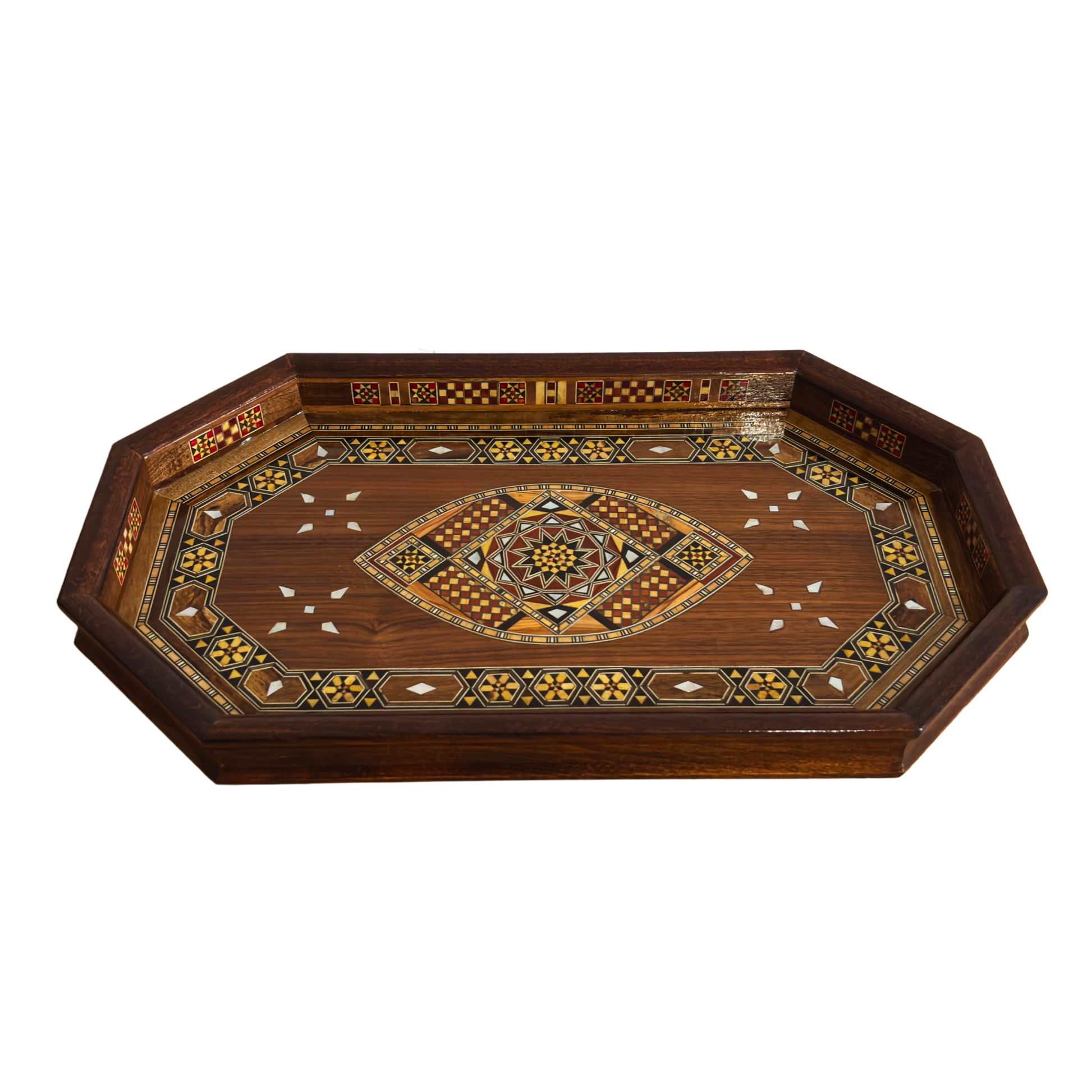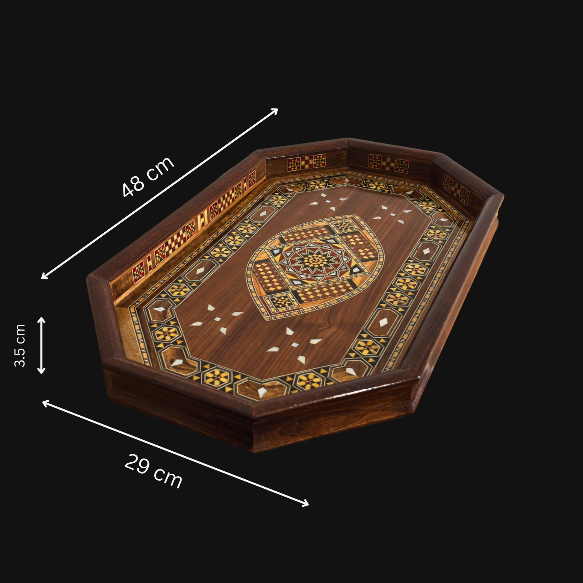 صينية خشبية موزاييك دمشقية – مطعمة بالصدف وإنهاء جوزي فاخر