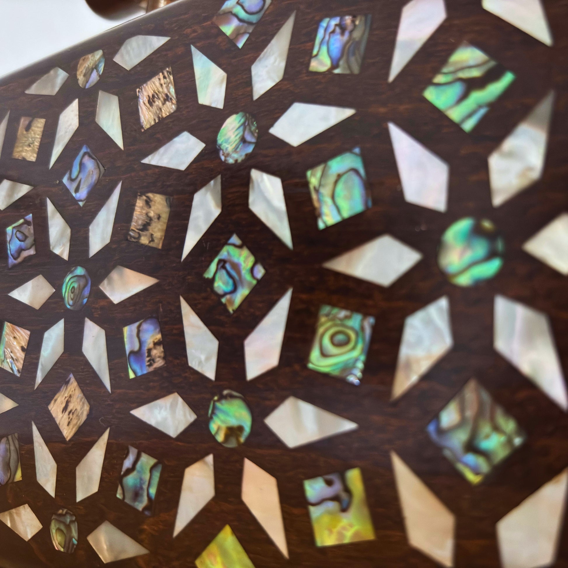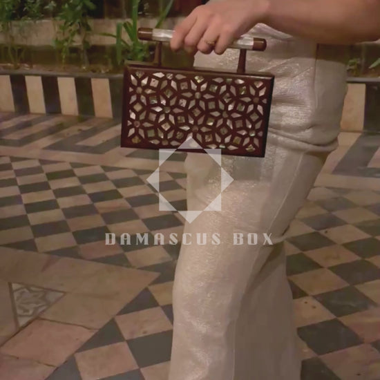 Damascene clutch, geometric pattern, botanical inlay, oriental design, mother of pearl, walnut handbag, Damascus Box