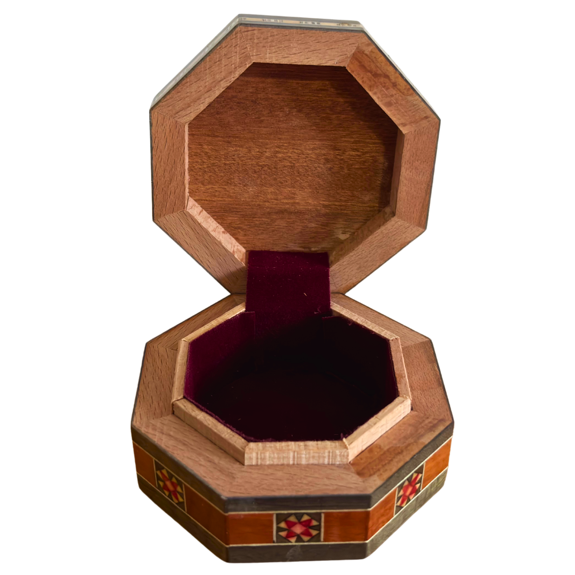 mini sekizgen mozaik kutu, el yapımı Damask kutu, sedef kakmalı takı kutusu, Orta Doğu hatıra kutusu, ceviz ağacı kutu, benzersiz hediye fikri, zanaatkar ahşap kutu, kültürel mozaik sanatı, Şam kutusu, Suriye kutusu, hediye için kadın, hediye için erkek
